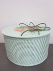 Vintage Sewing Basket Faux Ratan Wicker Sea Foam Green Satin Lining Japan 10.5”