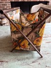 Vintage Sewing Basket Folding Knitting Bag Fabric Wood