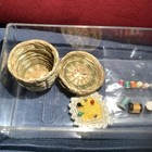 Vintage Sewing Basket With Contents Tray Vtg Buttons Spring Floral Design 10x8x6