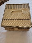 Vintage Woven Sewing Basket Box With Lid & Handle - Craft Storage Container