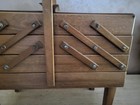 Vintage Wood Accordian Sewing Box 3 Tier Fold Out Chest Primitive Organizer