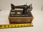 Antique Singer Sewing Wooden Box Case Purple Velvet Lined Storage Puzzle