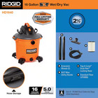 Ridgid Shop Vacuum Wet Dry Vac 16 Gallon 5.0 Hp Blower Hose Filter Nozzle Tool