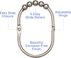 Utopia Bedding Double Glide Roller Set Of 12 Shower Curtain Hooks, Double Sided