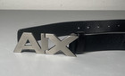 Armani Exchange Ax Black Leather Belt Signature Buckle Size 32
