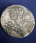 French Art Nouveau Sterling Silver Brooch Medal ‘flore’ Signed Antique 1900