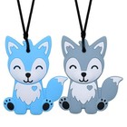 Soft Chew Necklace For Kids Fox Silicone Pendant Adjustable Length Blue Grey