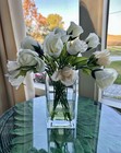 White Silk Flowers Orchids In Vase, Flower Arrangement 20" Euc