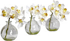 Nearly Natural 1277-wh Mini Phalaenopsis With Fluted Vase Silk Flower Arrangemen