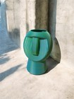 Unique Modern Silk Blue Lime Green Ribbed Vase Planter Abstract Art Decor New