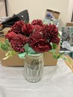31” Giant Red Roses Artificial Arrangement W/tall Glass Vase. Retail $387