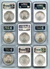 Lot Of 9 - 1 Troy Oz American Eagle Silver Dollars Ngc/pcgs Ms69 999 Fine Silver