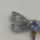 Monet Silver Tone Blue Enamel Dragonfly Brooch Pin Rhinestone Costume Jewelry