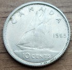 1965 Canadian Brilliant Queen Elizabeth Schooner Silver Ten Cent Coin!
