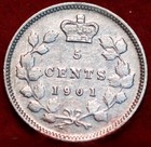 1891 Canada 5 Cents Queen Victoria Silver Coin Nice Details Better Grade