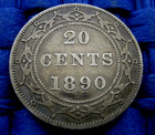 1890 Queen Victoria Newfoundland 20 Cent Silver Coin
