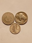 Old Rare Us Coins Starter Collection Lot Of 3, Buffalo Liberty V & Mercury!