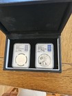 2021-w & S (pr70) Reverse Proof Silver Eagle Designer 2 Coin Set Pcgs Type 1 & 2