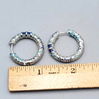 Blue Stones Hoops Pierced Earrings Silver Plated Well Made 1 In