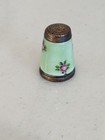 Antique Sterling Thimble Germany Mint Seafoam Green Enamel Guilloche Rose Floral