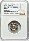 1310-1325 Basel Bishops Gerhard Von Vuippens Medieval Silver 1p Coin Ngc Au55