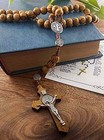 Saint Benedict Evil Protection Medal With Cross Wood Beads Rosary Necklace Na...