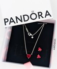 New 100% Authentic Pandora Sparling Red Heart Necklace Earrings Jewelry Gift Set