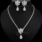 Floral Clear Austrian Rhinestone Crystal Necklace Earrings Set Wed Bridal N1770s