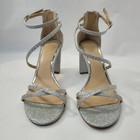 Jewel Badcley Mischka Women's Strappy Open Toe Shoes Back Zip Silver Size 9
