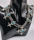 Sterling Silver, Turquoise Squash Blossom Necklace, 19" To 21", Southwestern
