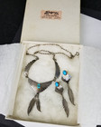 Sterling Silver Native American Necklace & Earring Set Turquoise Navajo Made