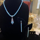 Turquoise & Topaz Pendant Necklace & Earrings Set Vintage Sterling Silver 925 Nf