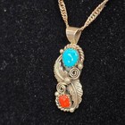 Navajo-style Sterling Silver Necklace Turquoise Pendant & Tear Drop Earrings Set