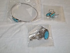 3 Piece Set Turquoise Sterling Silver Bracelet Earrings Necklace