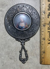 Antique Silver Plate Hand Held Vanity Mirror 7"
