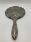 Vintage Ornate Silver Plated Vanity Hand Held Mirror Heavy Victorian Design