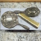 Vtg Silver Plated Vanity Set Hand Mirror, Hair Brush And Comb Heavy