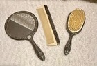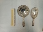 Vtg Silverplate Ornate Vanity Set Hand Mirror Hair Brush Small Brush Japan Read