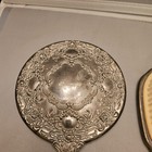 Art Deco Style Silver Plated Vanity Mirror & Brush Set Brass Showing