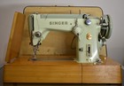 Vintage Portable Singer Sewing Machine With Bentwood Case & Motor