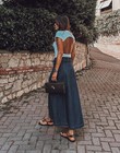Nwt Womens 0 2 4 10 Universal Thread Goods Co Maxi Denim Blue Jean Skirt