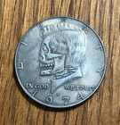Hobo Nickel Style Kennedy Half Dollar Art Skull Coin, Dated 1974