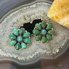 B1970 Vintage Southwestern Turquoise Sterling Silver 925 Cluster Earrings