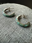 Native American Vtg Inlayed Turquoise Earrings Half Hoop Sterling Southwestern