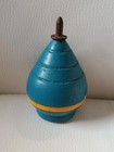 Vintage Wooden Blue Yellow Strip Spinning Top Novelty Toy Sealed T1