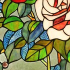 Floral Tiffany Style Stained Glass Hanging Window Panel Rose Flower Design