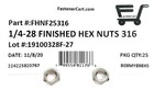 (25) 1/4-28 Finished Hex Nuts 316 Stainless Steel Fine Thread Unf Marine Grade
