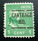 Sc # 804 ~ 1 Cent Washington Issue, Precancel, Carthage Mo.