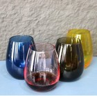 Stemless Wine Glasses Set Of 6 - Hand Blown Colored Short Wine Tumblers - 15 ...