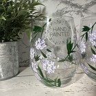 Hand Painted Stemless Tumblers Violets Floral Design Set/2